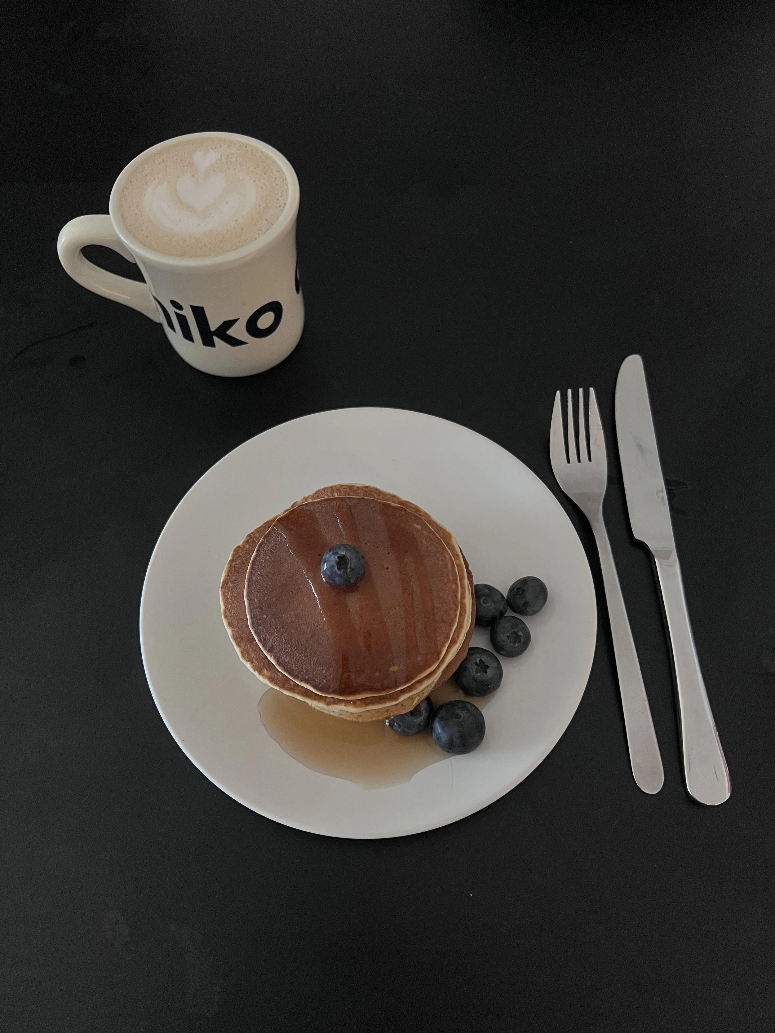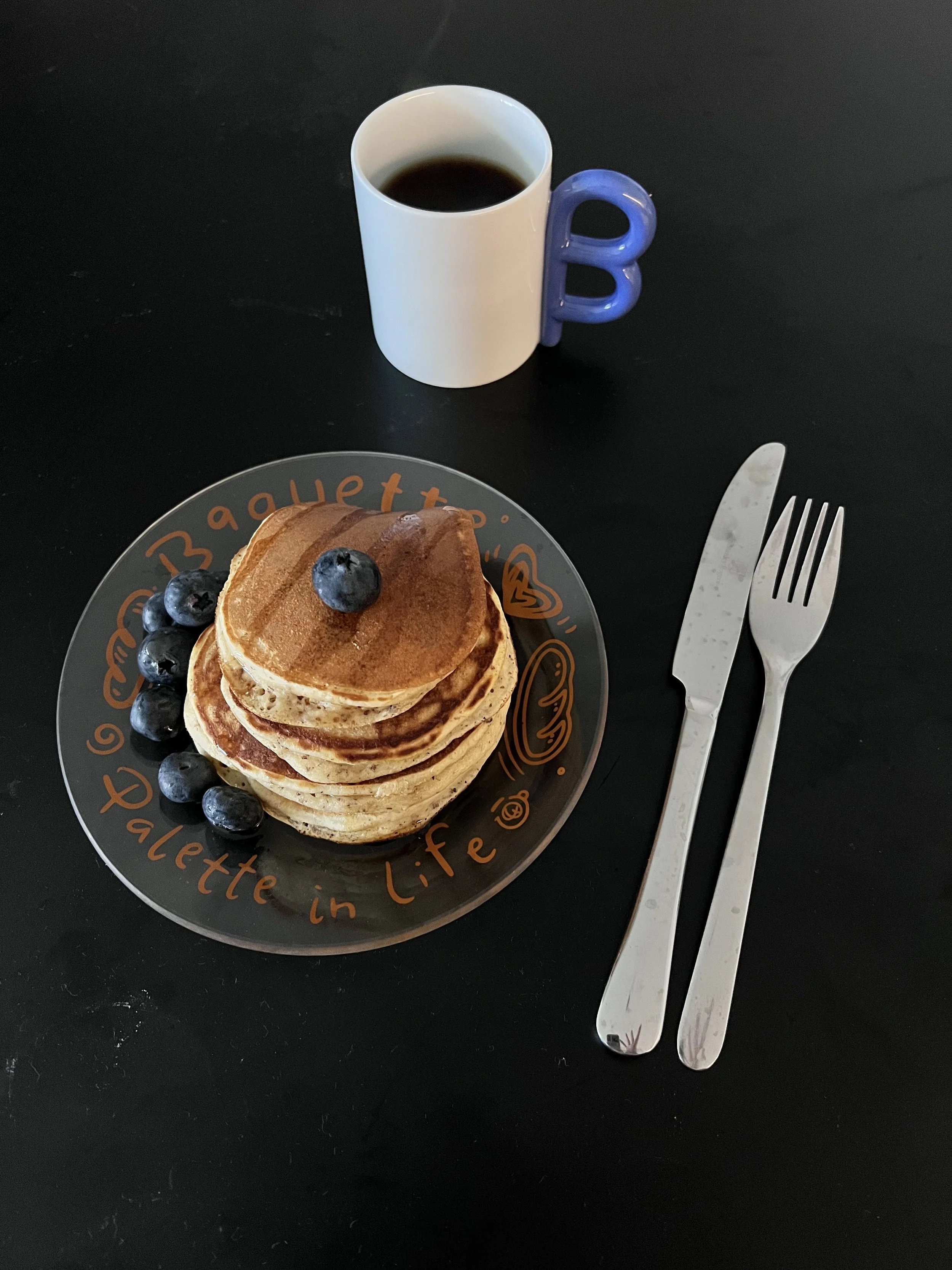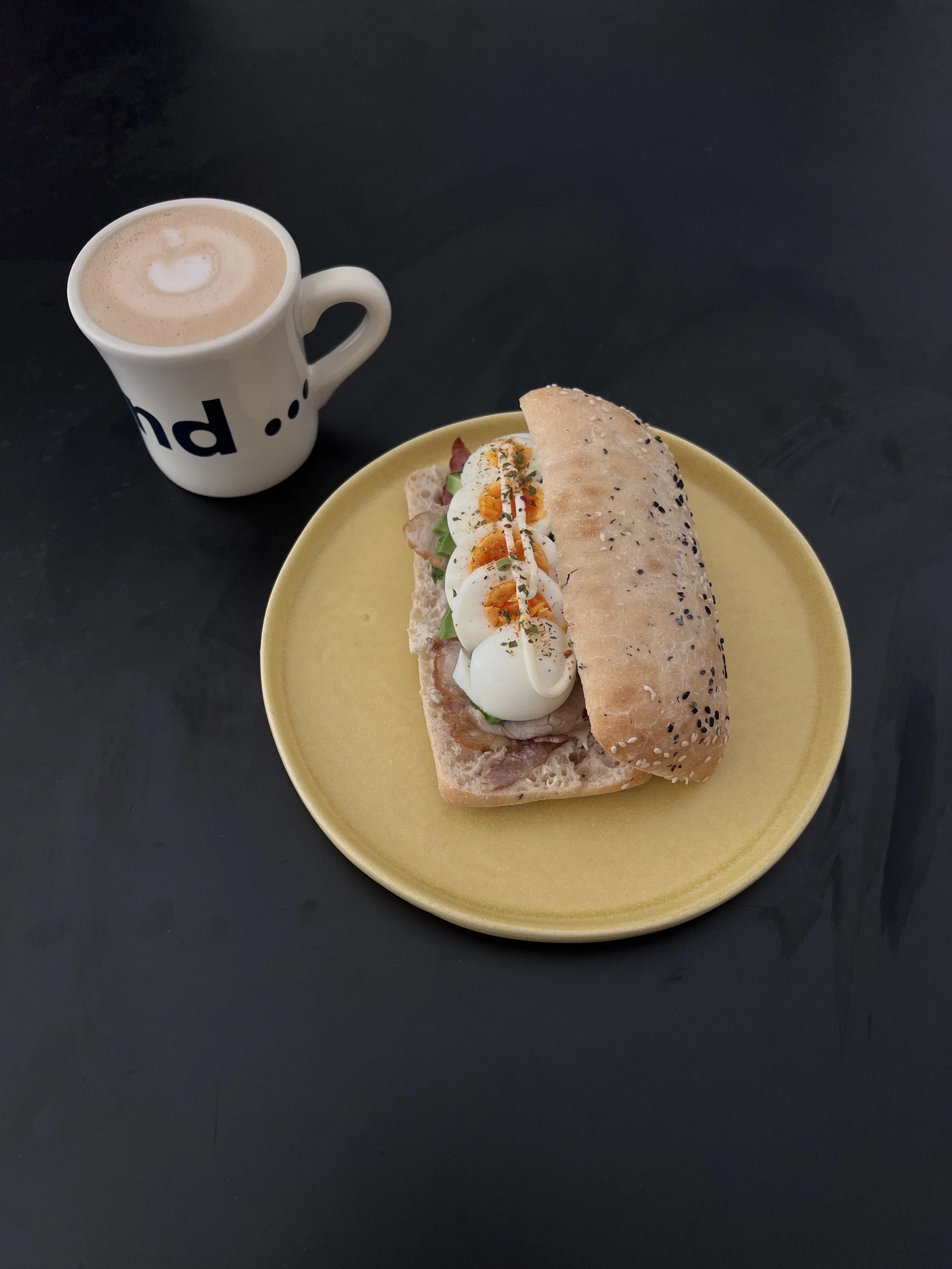 When I am not working, I am enjoying my coffee and brekkie at home.