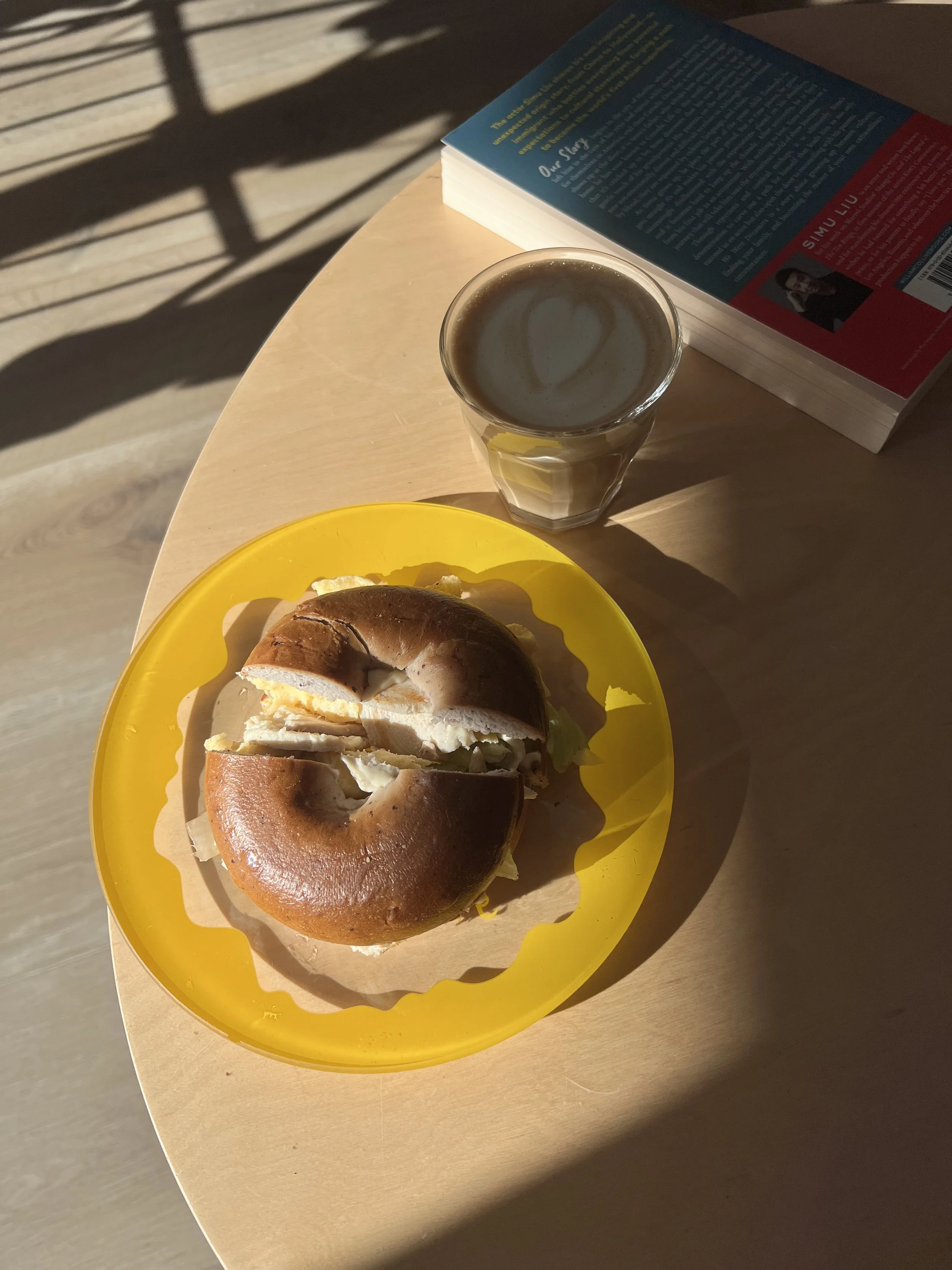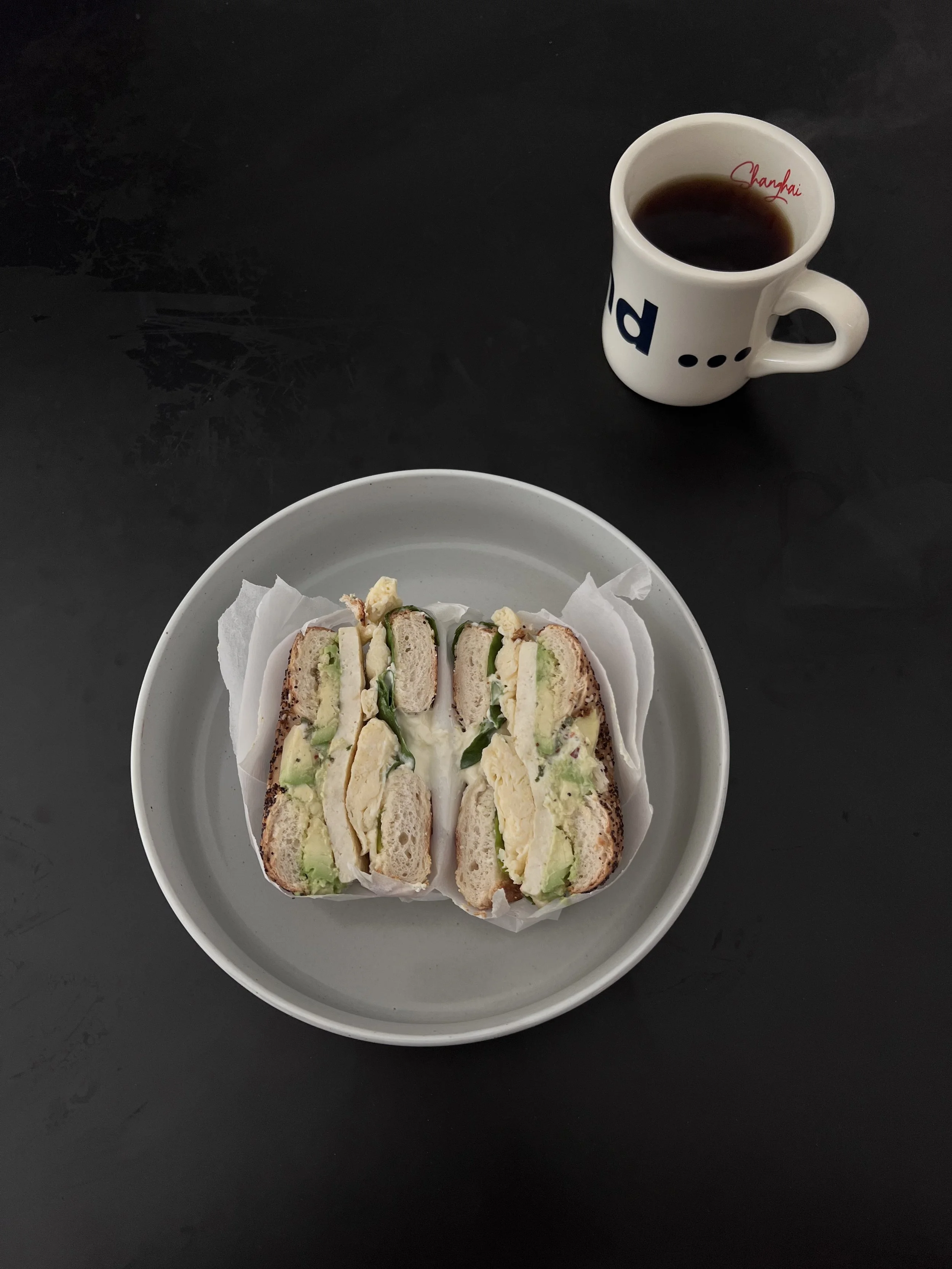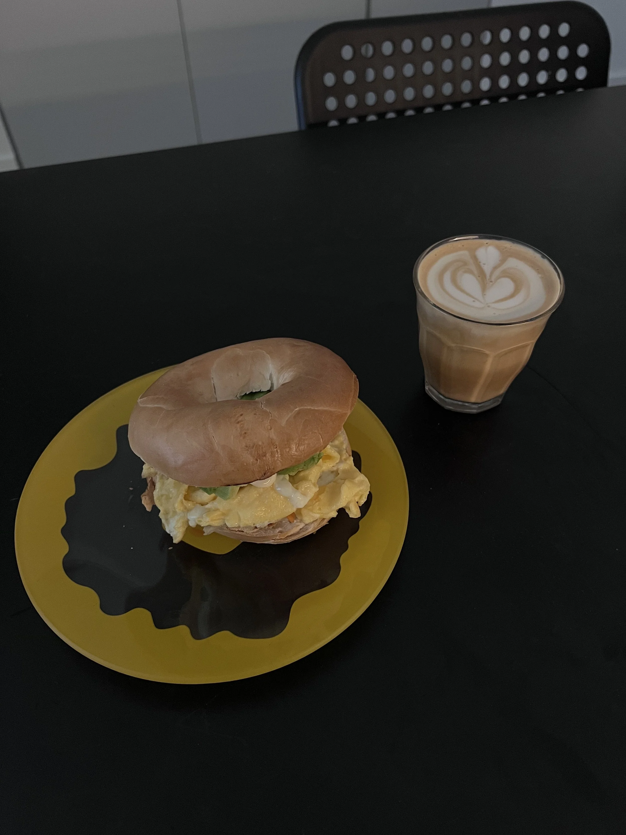 When I am not working, I am enjoying my coffee and brekkie at home.